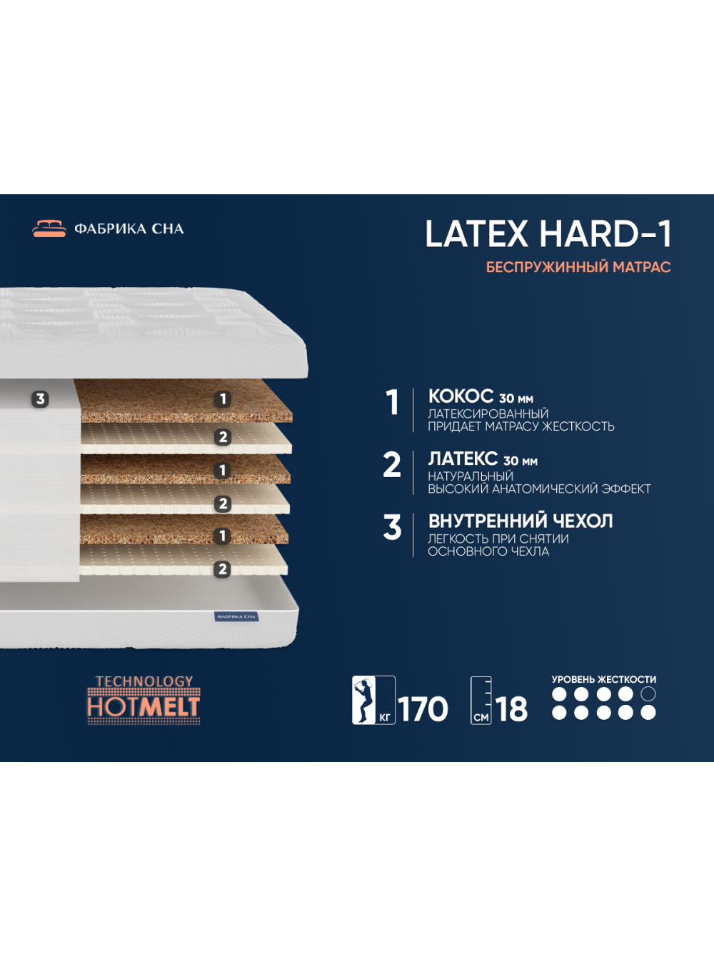 Матрас Фабрика Сна Латекс HARD 1 Слоним